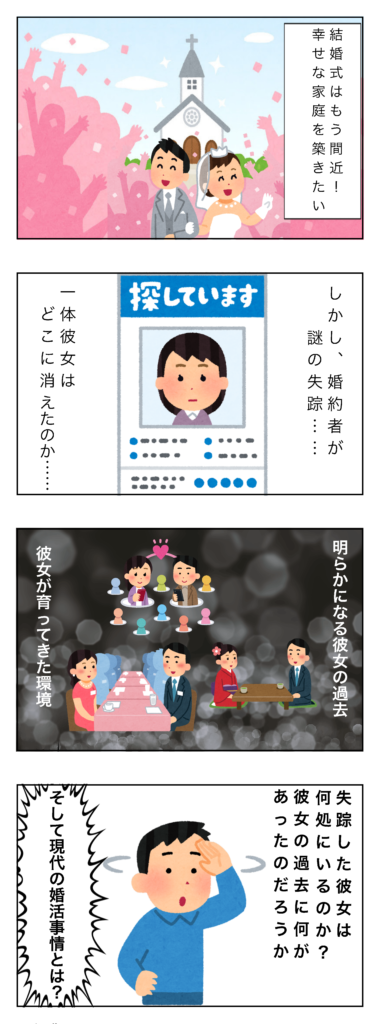 ・失踪した婚約者を追うにつれて判明する婚約者がしてきた婚活。